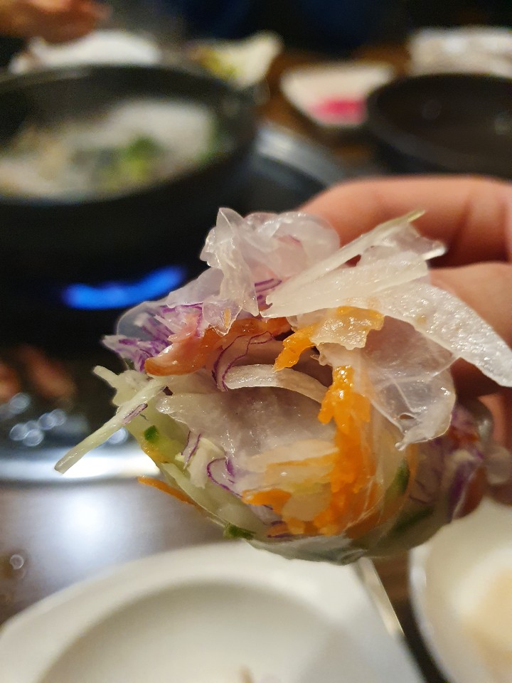 훈제오리가 월남쌈으로 싸먹으니까 은근히 잘 어울렸습니다.