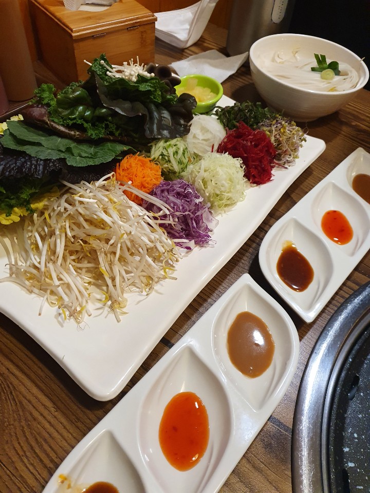 야채도 푸짐하게 나오고 부족한 건 리필해 먹을 수 있었어요.
