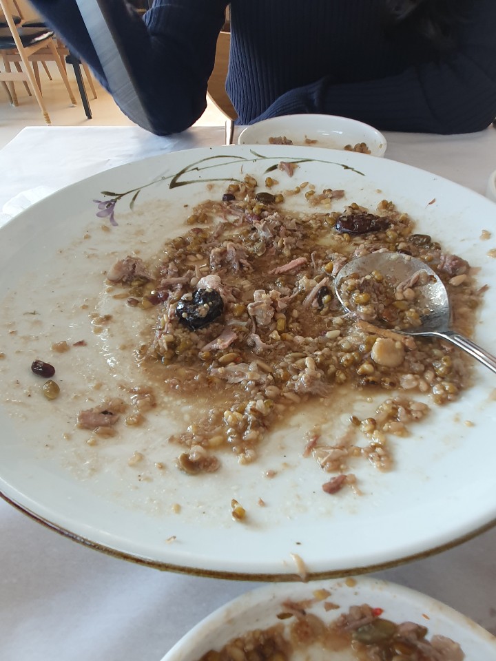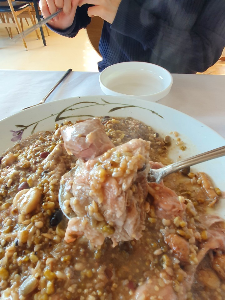 사장님께서 남아있는 녹두랑 잡곡이 진짜 보양식이라고 다 먹으라고 하셨는데