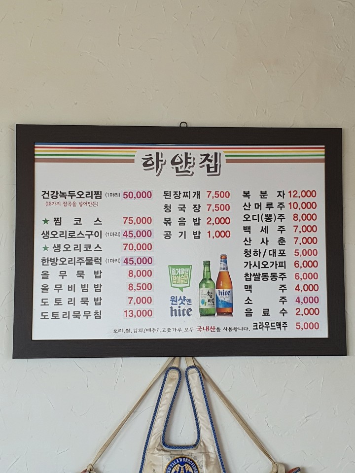 우리는 하얀집의 대표메뉴 건강녹두오리찜으로 주문했어요.